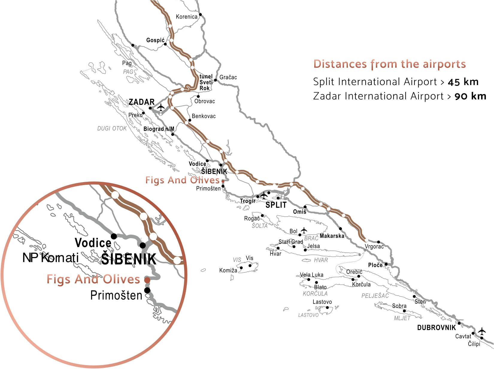 Easily reached from Split and Zadar international airports, the town places you within close proximity to