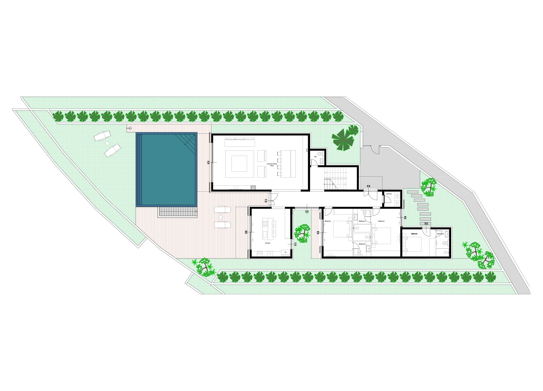 Villa consists of living room, kitchen, four bedrooms and four bathrooms.